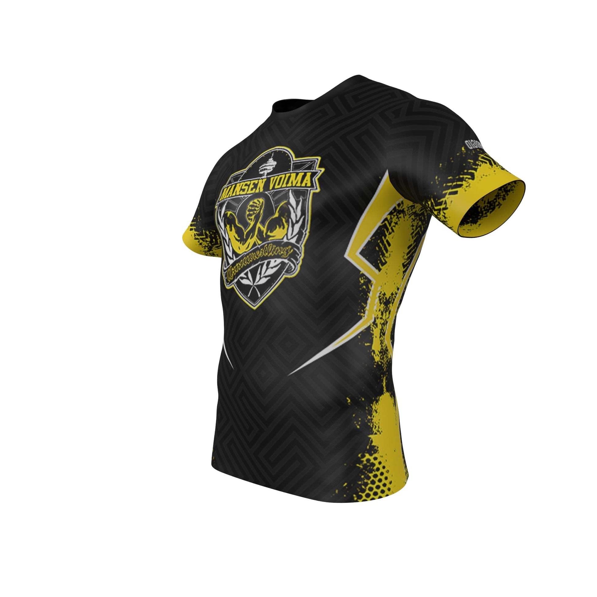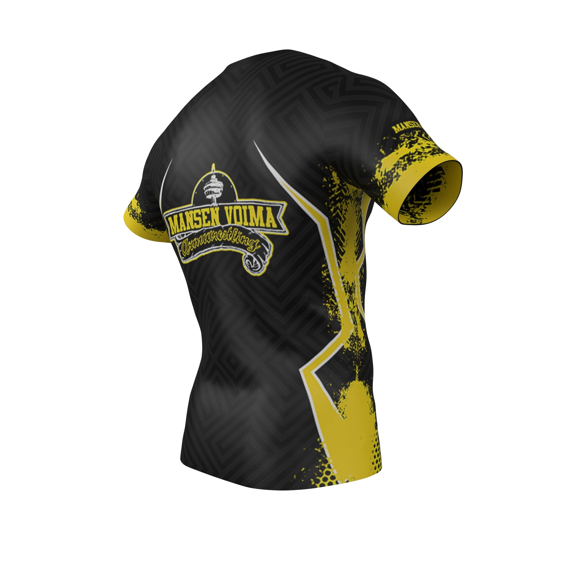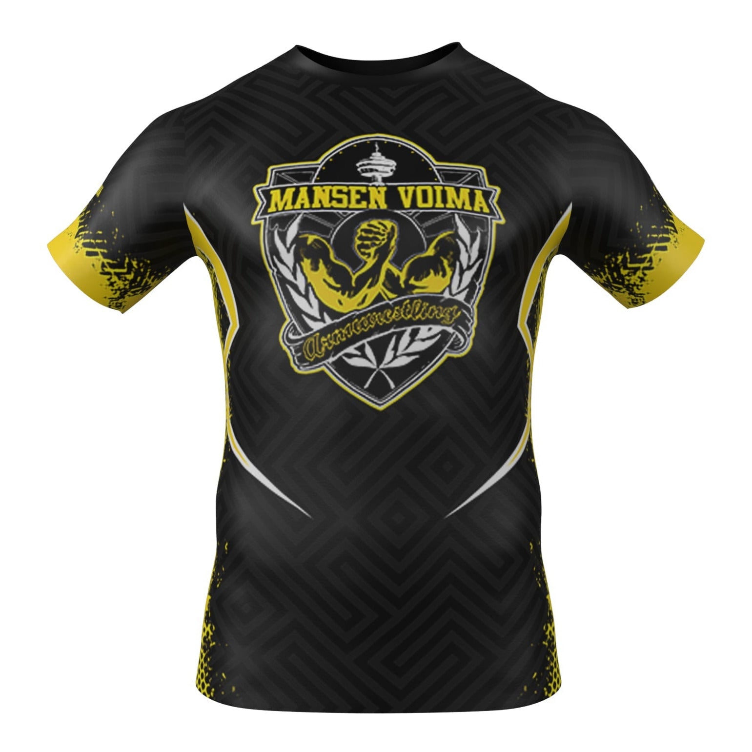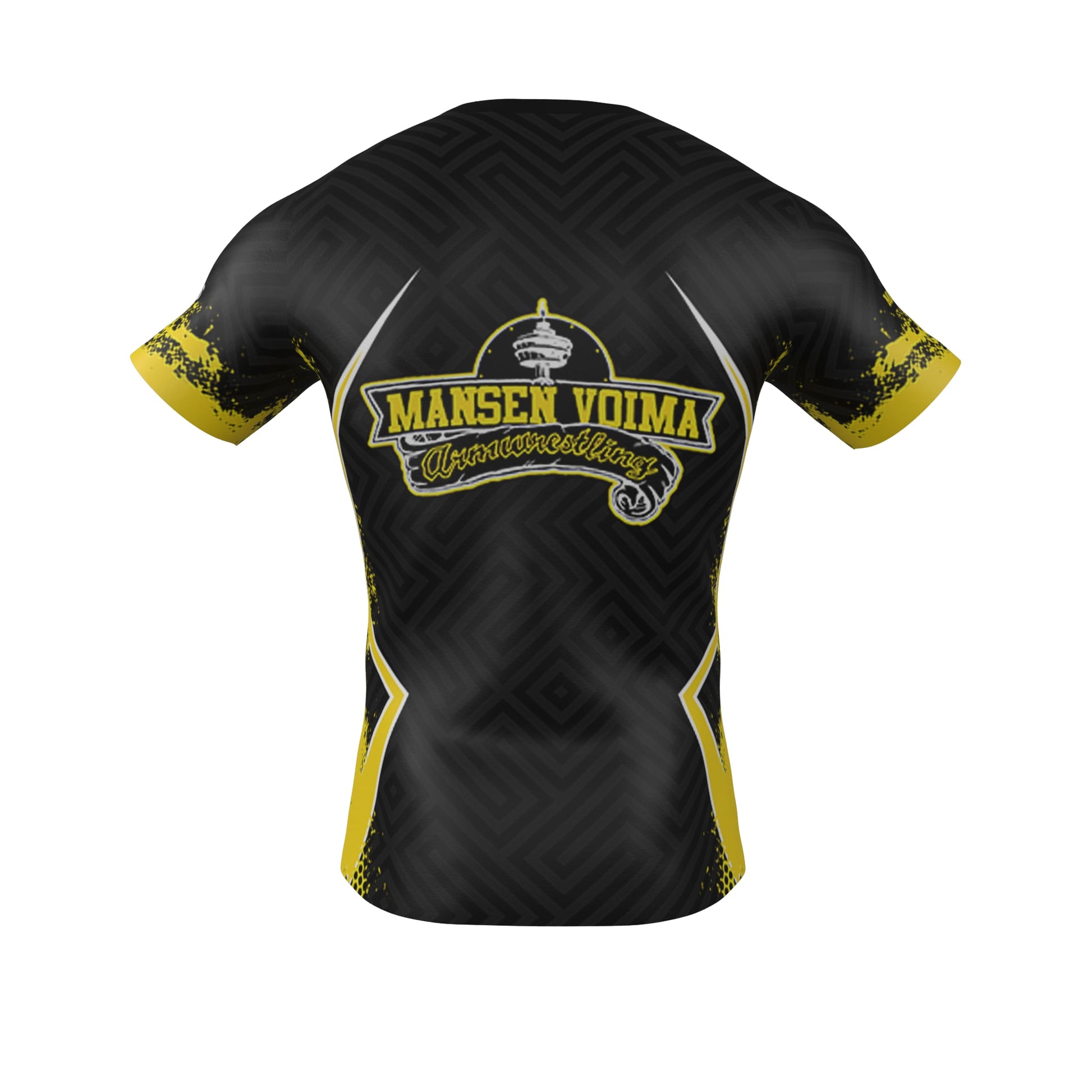 Official Mansen Voima Armwrestling Club performance shirt – made for strength, style, and identity. Designed with bold black and yellow accents and detailed club insignia, this shirt is built to represent the energy of the sport and your connection to the Finnish armwrestling community.