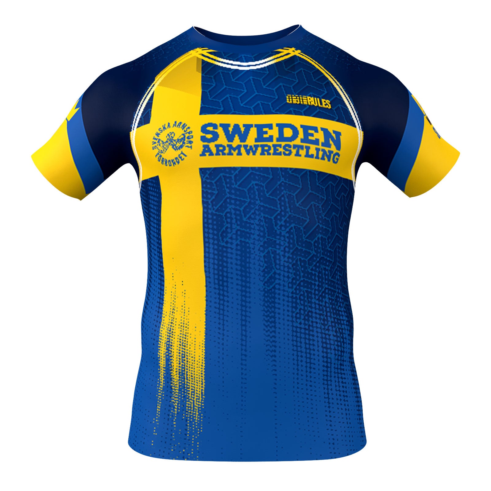 Dominate the platform in the official Sweden Armwrestling t-shirt – where national pride meets cutting-edge performance. Crafted for the Swedish national team, this shirt delivers bold visuals and technical excellence. The striking design features the iconic blue and yellow cross, enhanced with dynamic graphic patterns and powerful typography.